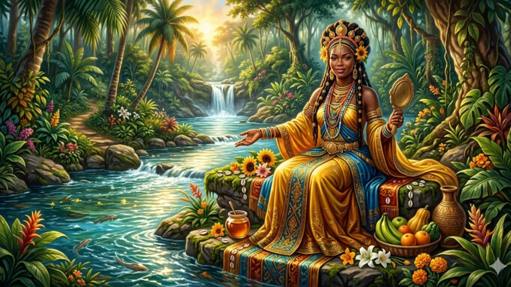 In Yorùbá mythology, the goddess Oshun is vital; without her sweet waters, the initial attempt at creation would have remained a dry and lifeless desert.