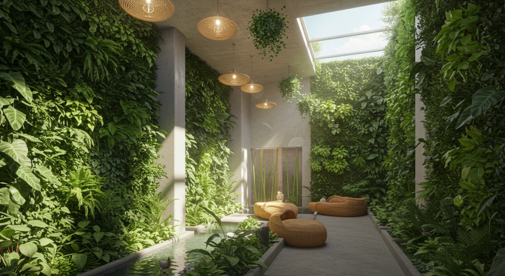 But biophilic architecture is not only about interiors. It’s also reflected in site-sensitive design, where structures follow the contours of the land, embrace existing ecosystems, and use vegetation as an active design element. Buildings no longer compete with nature; they participate in it.